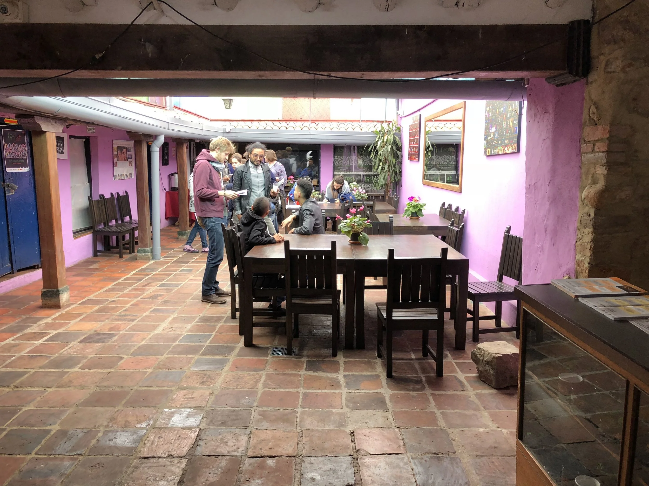 Our performances (in English with Spanish supertitles) were well received by our audiences, and it was a pleasure to hang out afterwards and discuss our work and the importance of international exchange in the arts with the other artists participating in the festival. (My Spanish, out of practice for quite some time, fared surprisingly well!) Afterwards, our group had the honor of sharing a meal with other artists at the home of Patricia Ariza, the legendary Colombian alternative theatre artist who founded the Teatro la Candelaria and created FESTA. (For a brief discussion of her life and work, check out this piece on HowlRound.) Her stories about the origins of the Colombian counterculture and her political activism were enthralling.
